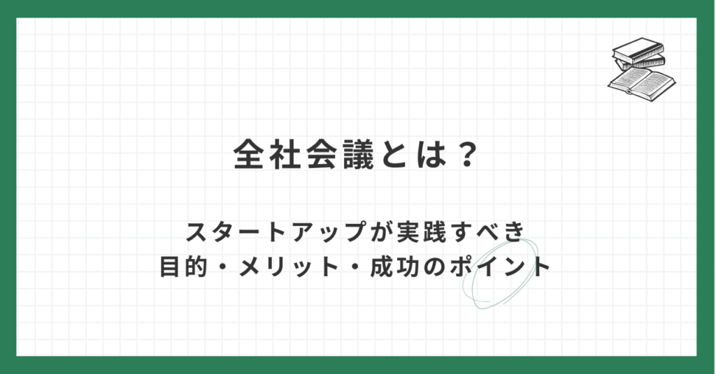 この記事でわかること 全社会議とは? 全社会議の目的と実施するタイミング 全社会議を実施する5つのメリット 全社会議で生じる課題とリスク スタートアップの全社会議を成功させる実践ポイント 全社会議は、経営方針や事業状況を全メンバーで共有し、組織... -