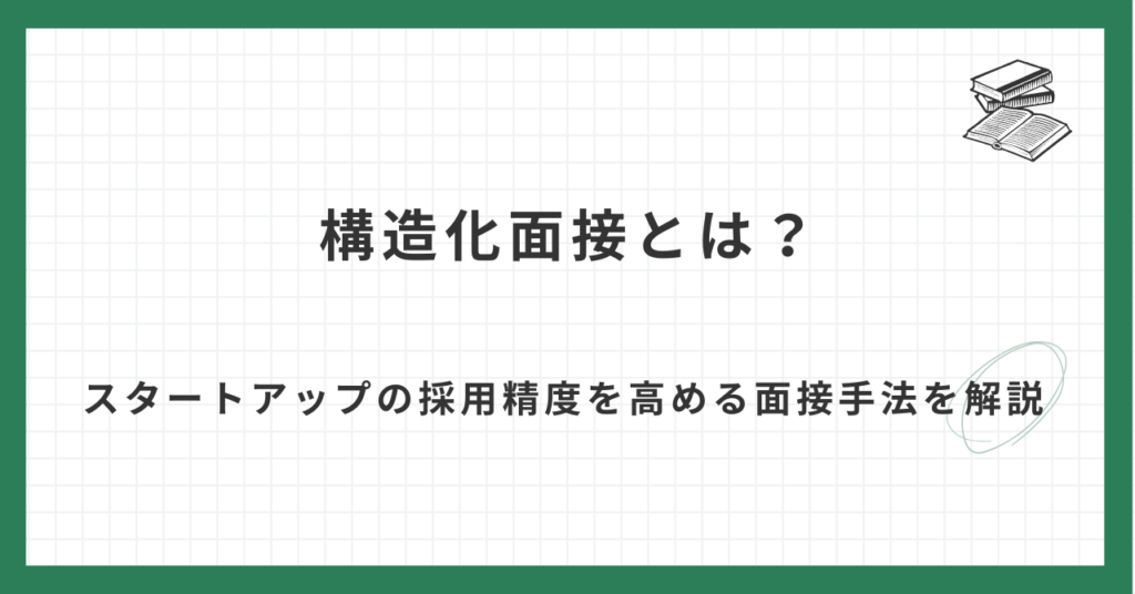 この記事でわかること 構造化面接とは? 構造化面接・非構造化面接・半構造化面接の違い スタートアップで構造化面接が注目される理由 構造化面接を導入する5つのメリット 構造化面接導入時の4つのデメリット 採用面接の質を高めたいと考えているスタート... -