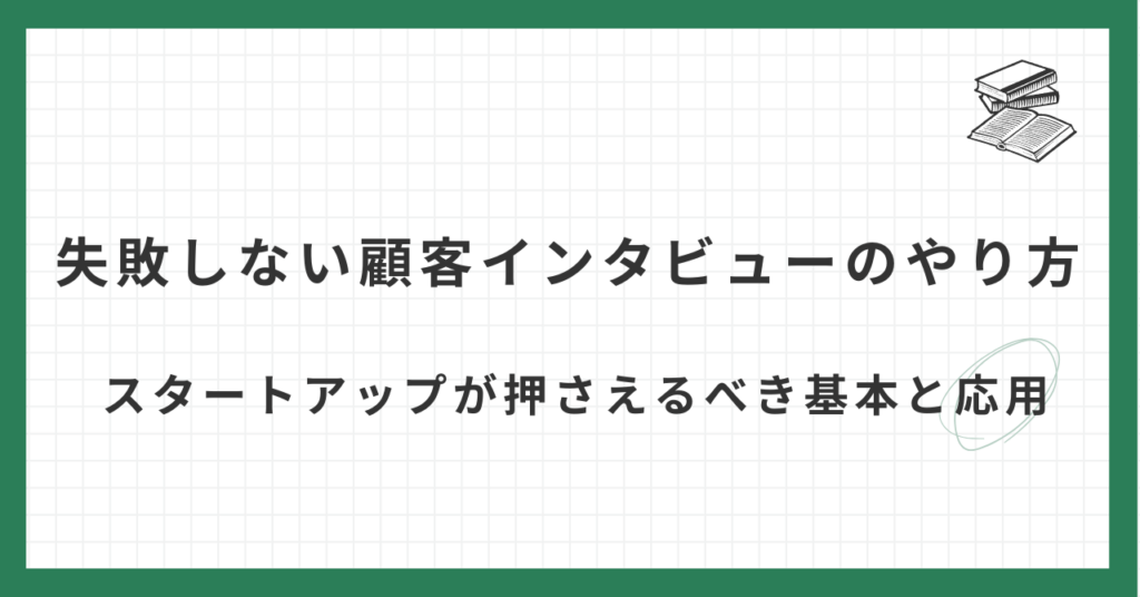 この記事でわかること スタートアップにおける顧客インタビューの重要性 顧客インタビューを始める前の準備 効果的な顧客インタビューの実施方法 顧客インタビューでよくある失敗とその対策 インタビュー結果の分析と活用法 スタートアップの失敗要因の第... -