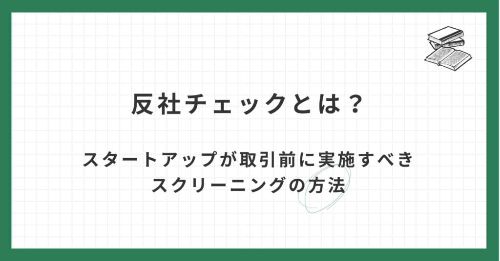 この記事でわかること 反社チェックとは? スタートアップにとっての反社チェックの重要性 反社チェックを実施すべき対象範囲とタイミング スタートアップが実践できる反社チェックの具体的手法 反社会的勢力が判明した場合の対処法 スタートアップの健全... -