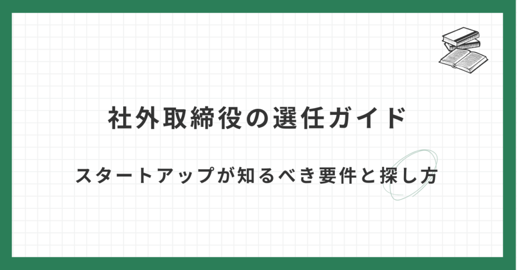 この記事でわかること 社外取締役とは? スタートアップが社外取締役を選任すべきタイミング 社外取締役の法定要件と独立性の基準 社外取締役に求められるスキルと経験 スタートアップにふさわしい社外取締役の人材像 スタートアップの成長過程において、... -
