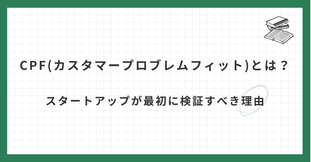 この記事でわかること CPF(カスタマープロブレムフィット)とは何か なぜスタートアップにCPFが不可欠なのか CPFとPMFの関係性を理解する CPFを検証する具体的な手法 CPF達成の判断基準と注意点 スタートアップの9割が失敗する最大の原因は「誰も求めてい... -
